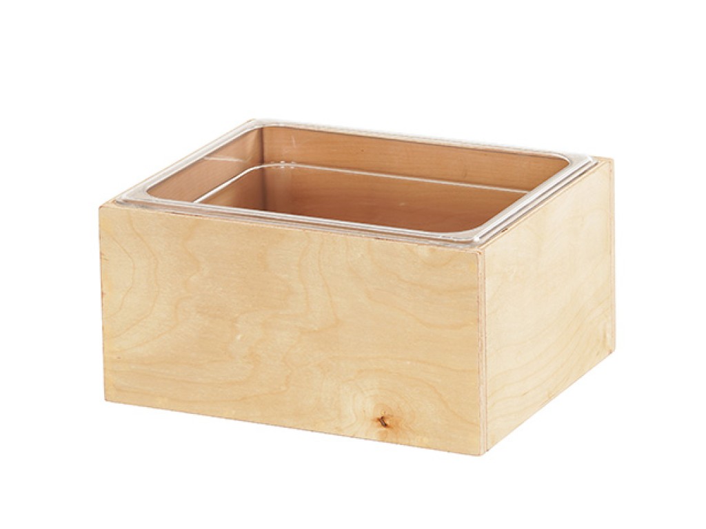 The Logan Ice Housings feature a simple, minimalistic birch wood design that brings natural warmth to any display. Each unit includes a durable polycarbonate ice pan and liner to protect the wood while keeping beverages perfectly chilled. Available in 10x12 and 12x20 sizes.