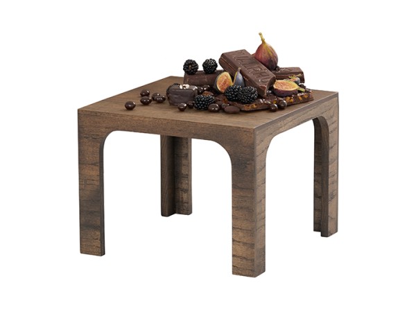 Add height and dimension with the Melrose Square Riser. This 12x12x9 chocolate brown oak wood riser with arched legs elevates displays naturally and elegantly - perfect for retail or buffet setups.