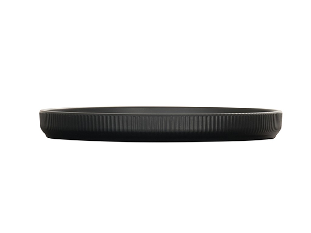 Designed with a ribbed matte finish and curved profile, the Arista 8" Black Plate offers a sleek, modern canvas for appetizers, salads, or small plates.