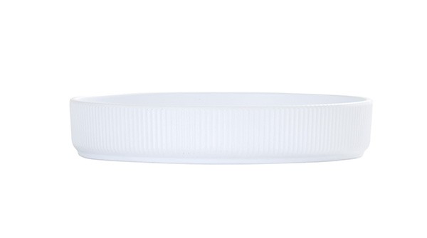 With a raised rim, ribbed matte texture, and curved edges, the Arista 8" White Plate delivers a refined presentation for appetizers and salads.