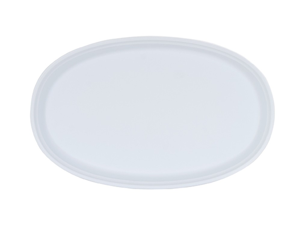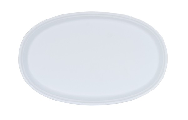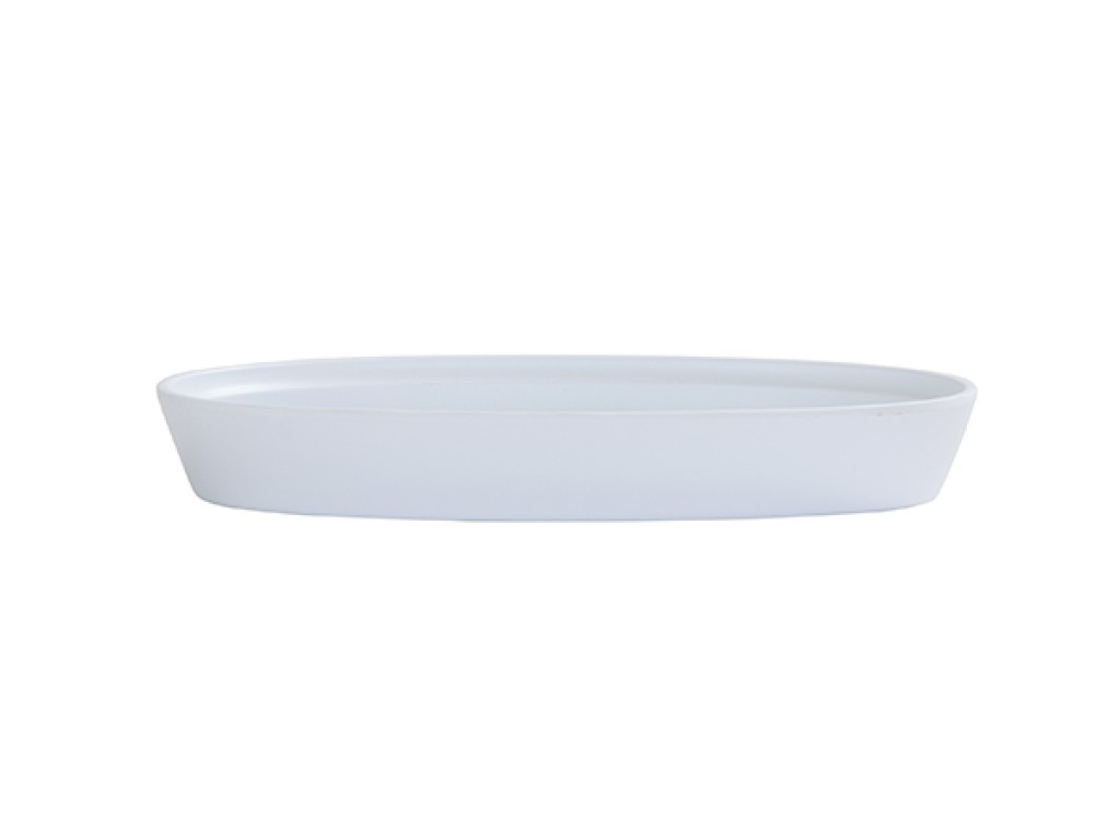 With a matte finish and elegant ridged rim, this 11x7 White Cove oval platter is perfect for small shareables, sides, or dessert displays.