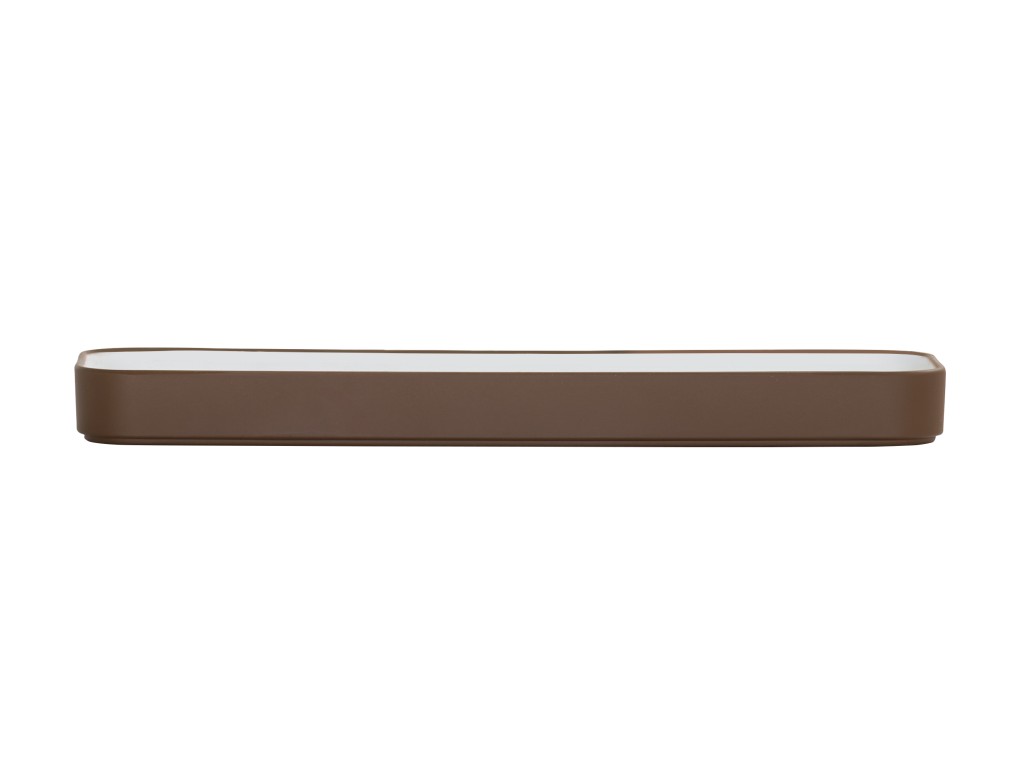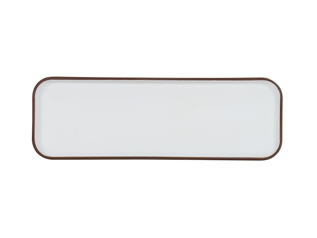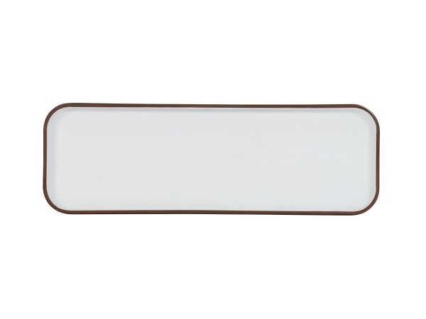 The Hudson 4" × 12" Tray features a stoneware-inspired ivory surface with a brown exterior for a handcrafted look. Made from melamine, it’s ideal for appetizers, desserts, or narrow tabletop displays.