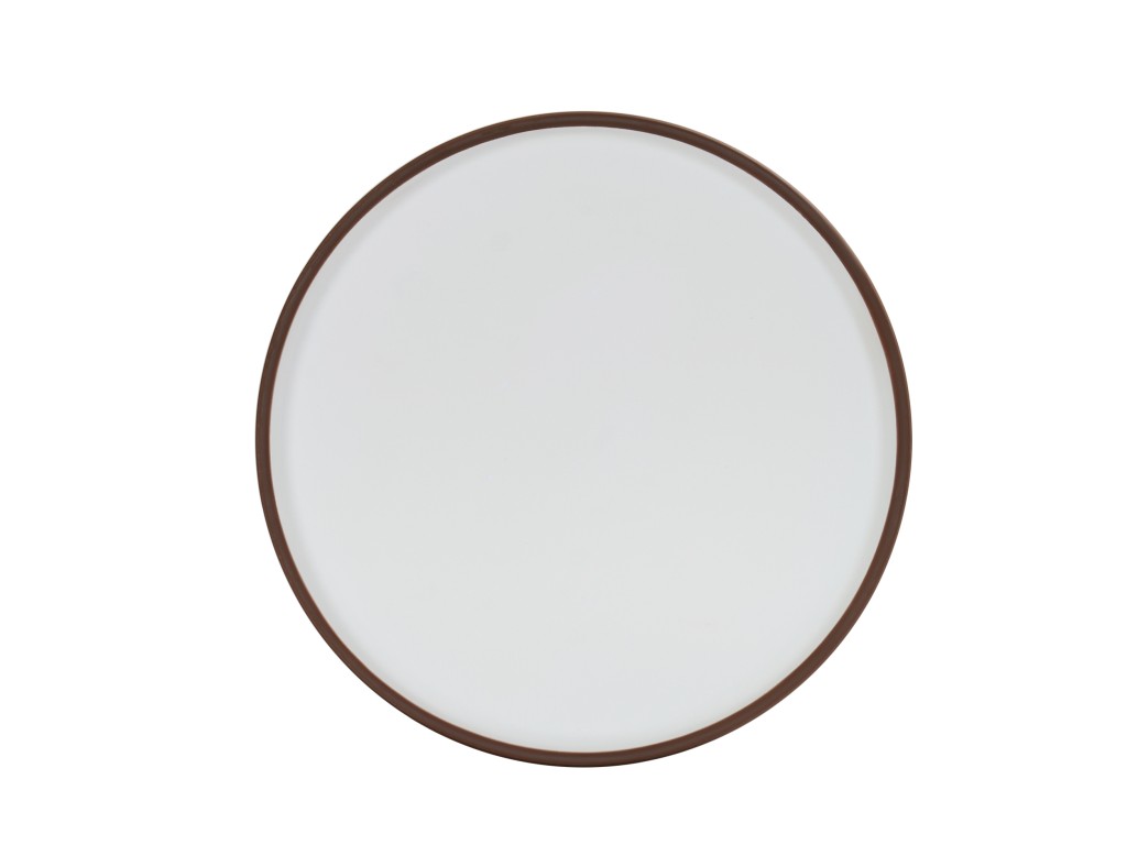 The Hudson 8" Low Rim Plate pairs a smooth ivory surface with a contrasting brown exterior for a classic stoneware look. Its low rim design and durable melamine construction make it ideal for appetizers, salads, and lunch service.