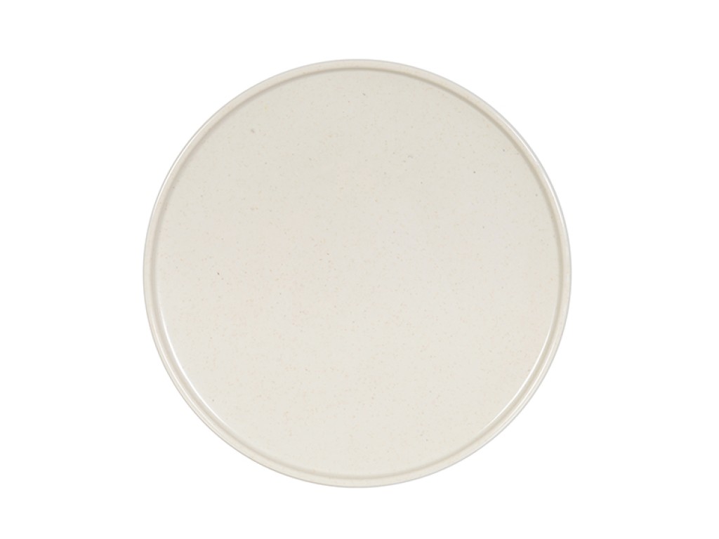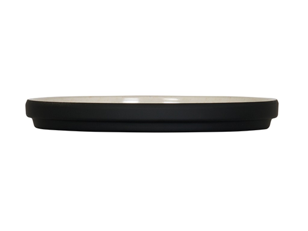 Designed with a sleek low rim and striking two-tone speckle pattern, this modern 6" Sorelle plate features a stunning contrast of both matte and gloss finishes and is perfect for composed appetizers, desserts, or small plates.