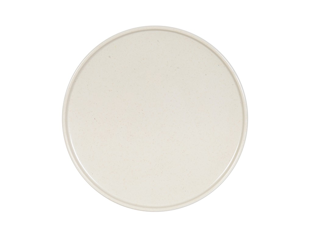 Designed with a sleek low rim and striking two-tone speckle pattern, this modern 8" Sorelle plate features a stunning contrast of both matte and gloss finishes and is perfect for composed appetizers, desserts, or small plates.