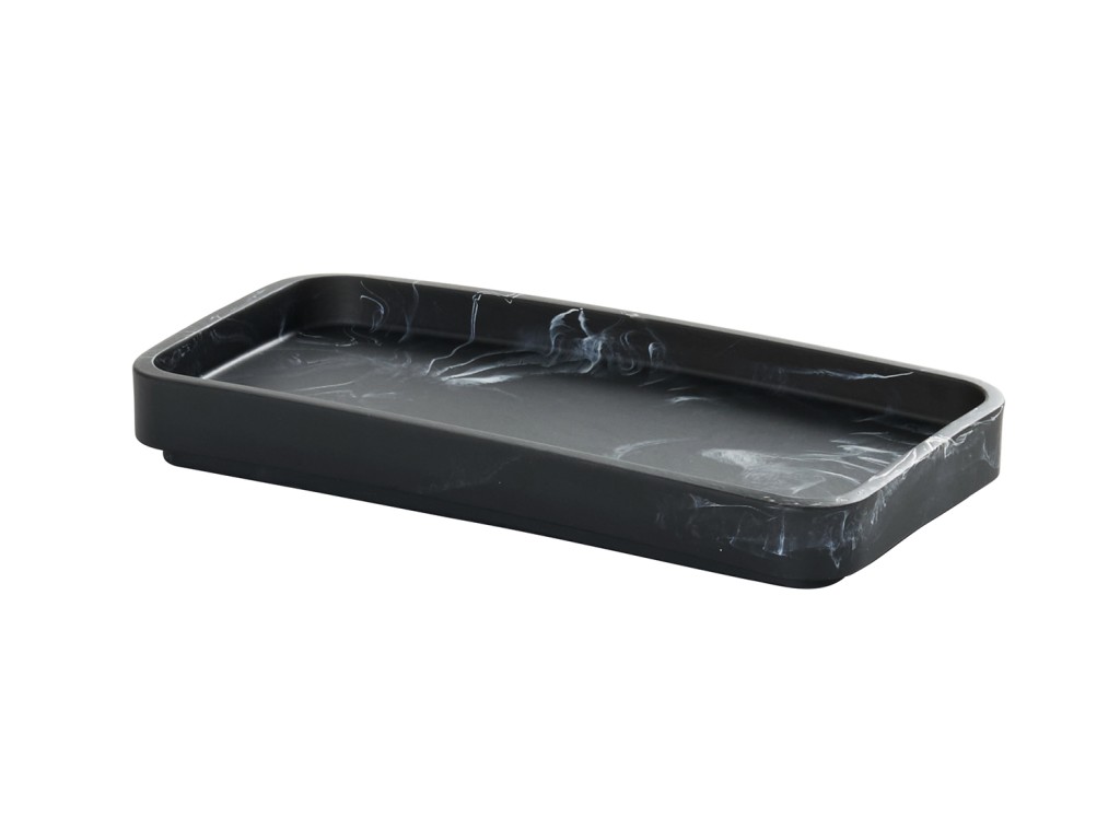 Made of resin, the 4x8 Spoon Holder in Black Swirl features a clean and elegant design. It offers a practical solution for holding spoons and utensils, enhancing the aesthetic of any table or service station