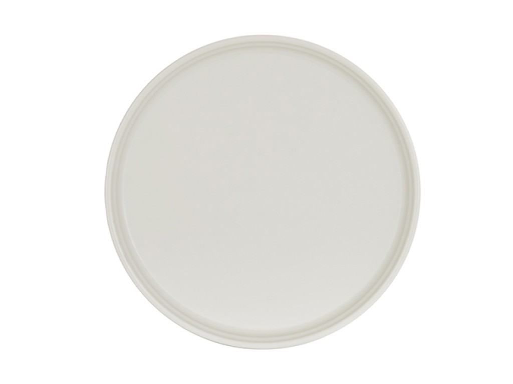 This 8" Cove Ivory plate features a premium matte finish and a sleek ridged rim, offering a modern canvas for appetizers, desserts, or small bites.