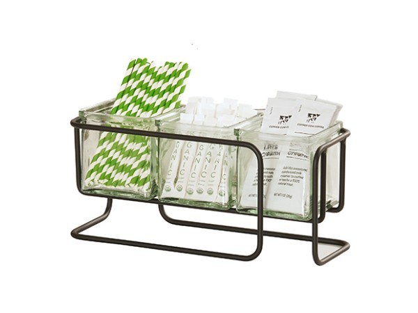 Add a sleek, modern touch to your display with the Logan Jar Holder. Crafted from rounded black wire with a minimalistic design, this piece provides a clean, elevated way to organize condiments, packets, or toppings with style and simplicity.