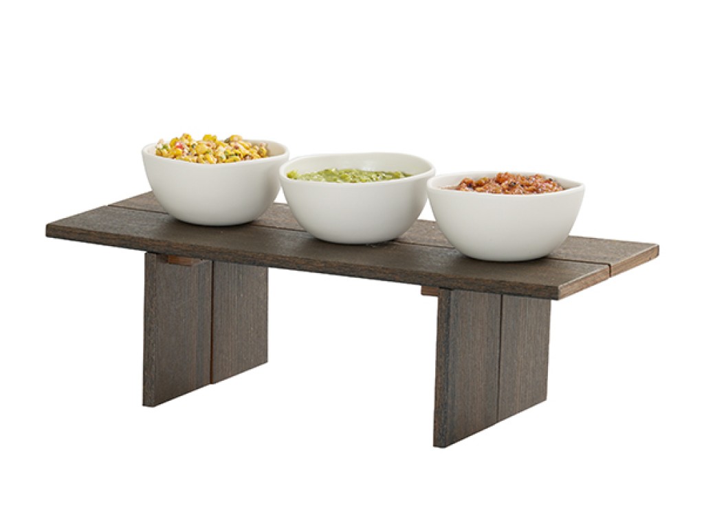 Designed to add elevated dimension, this rectangle Vista riser adds height to food and beverage displays while maintaining a clean, modern walnut look. Made from durable HDPE for indoor or outdoor use.