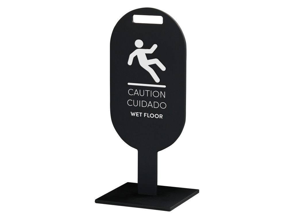 Designed with a modern oval design, this floor-standing wet floor sign blends safety with style. Crafted from durable, weather-resistant HDPE, it's perfect for indoor or outdoor use in high-traffic hospitality spaces.