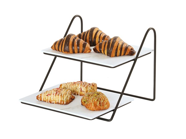 This off-set Logan 2-Tier Merchandisers bring modern round-wire style to your setup. Mix and match with birch wood or melamine flats to build your perfect tiered display - simple, stylish, and ready for endless possibilities!