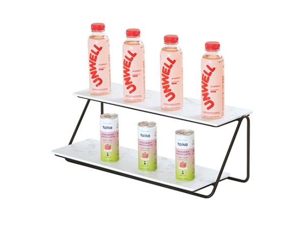 This off-set Logan 2-Tier Merchandisers bring modern round-wire style to your setup. Mix and match with birch wood or melamine flats to build your perfect tiered display - simple, stylish, and ready for endless possibilities!